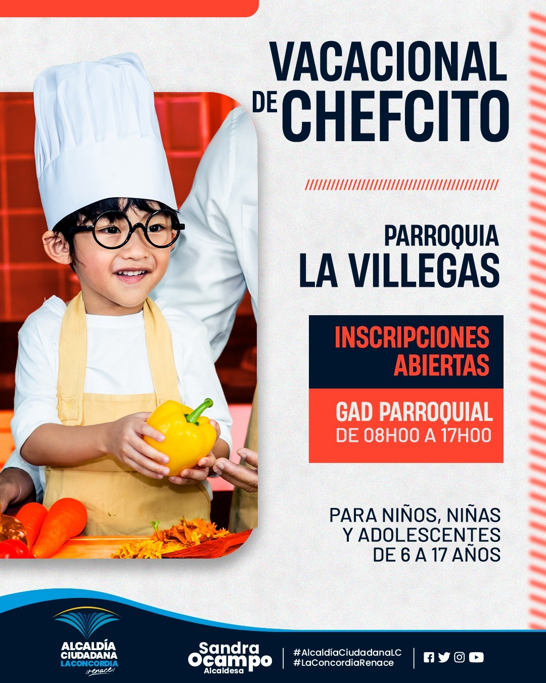 El Gad Parroquial Rural La Villegas y el Municipio La Concordia, invita a todos los niños, niñas y adolescentes de nuestra parroquia a sumergirse en el mundo de la danza y la cocina con los 𝐂𝐔𝐑𝐒𝐎𝐒 𝐕𝐀𝐂𝐀𝐂𝐈𝐎𝐍𝐀𝐋𝐄𝐒